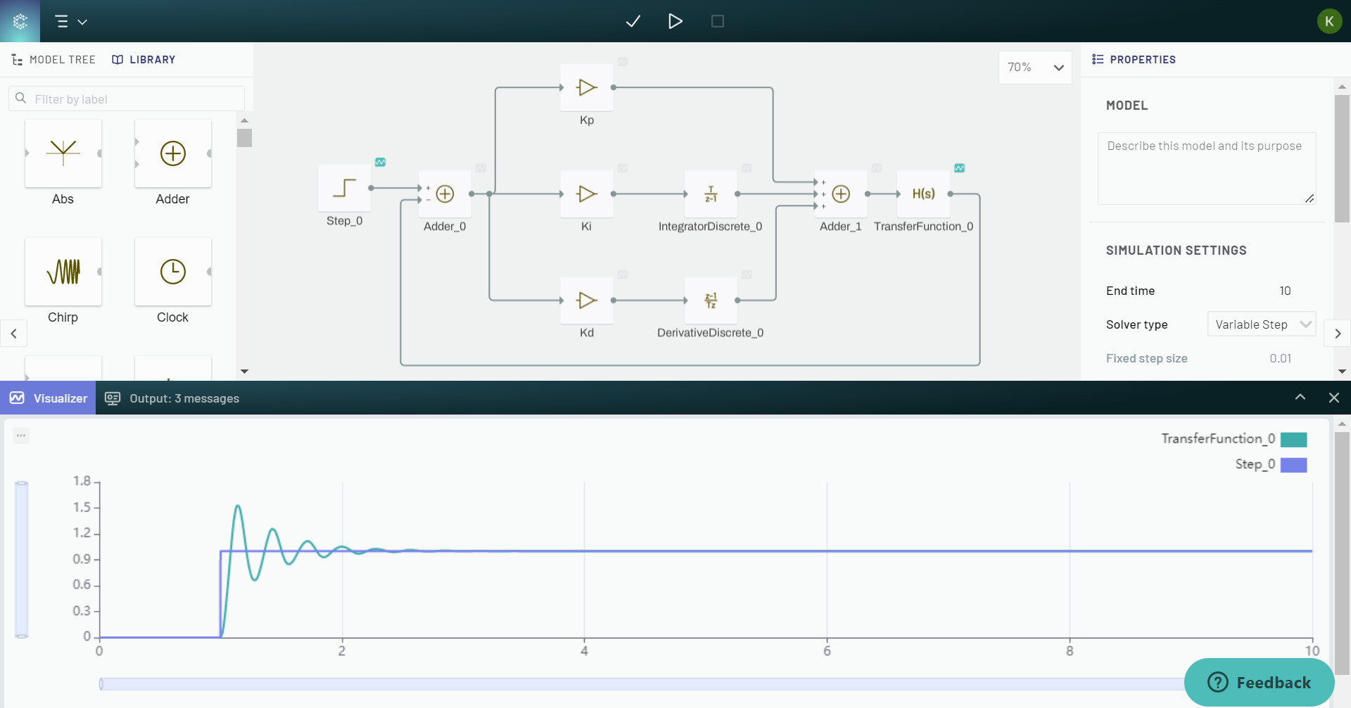 Users can use pre-built function blocks to model their systems in discrete, continuous and hybrid domains. These function blocks span multiple use cases including aerospace and defense, automotive, communications, electronics, Internet of Things (IoT) and manufacturing